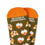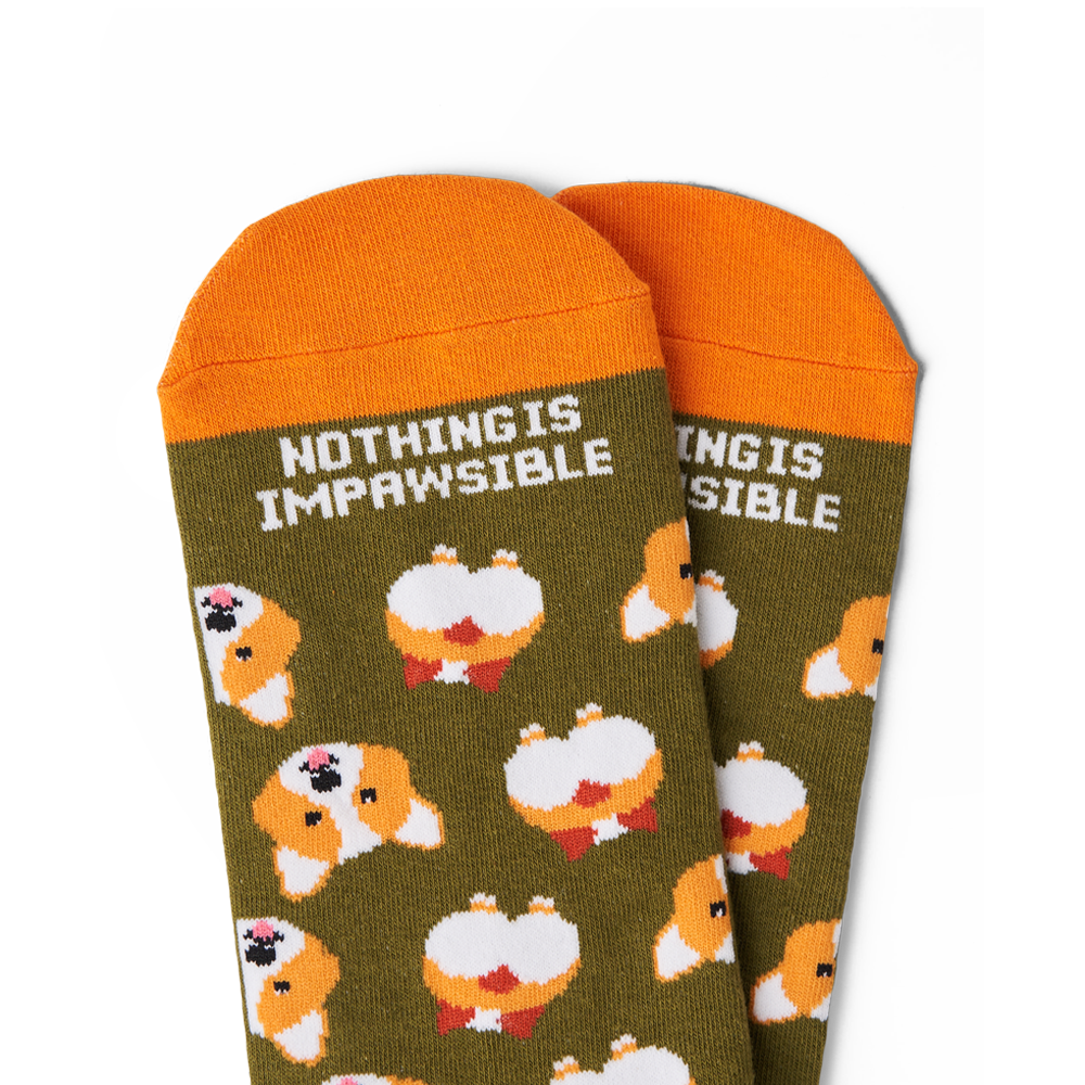 There are just a handful of things in this world that can make a heart melt, and Corgis are one of them! Presenting you, the most adorable Corgi sock yet! We created this pair to remind you that if you put your heart into it, nothing is impawsible!