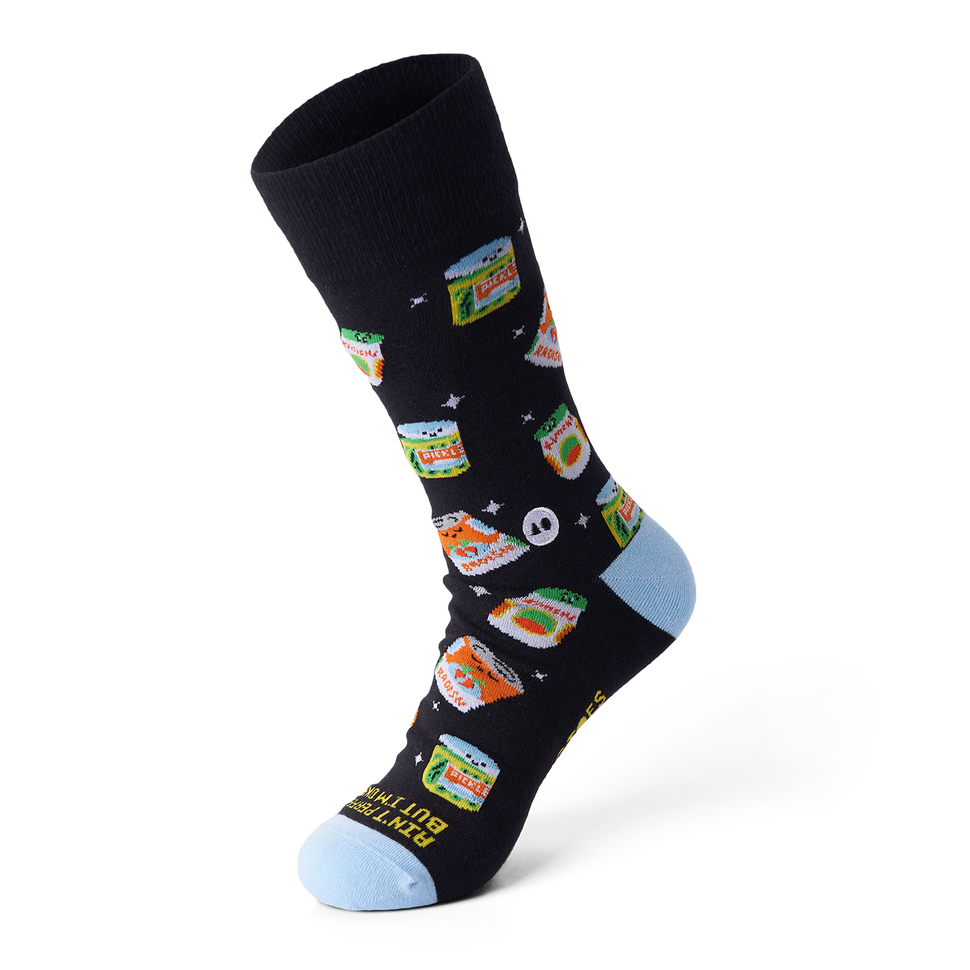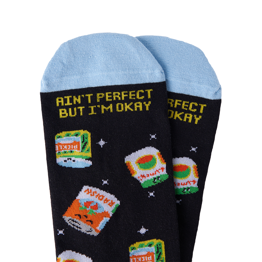 😳 Did you know kimchis are pickles too? The Picky Pickle sock features a bunch of cute pickles in jars and cans with a gentle reminder that even if it's not perfect, it can still be wonderful.
