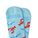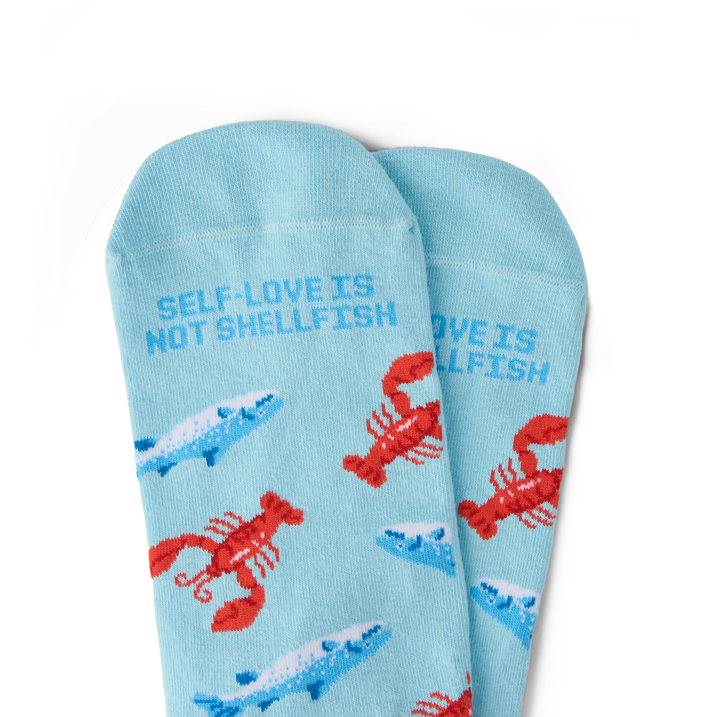 So many people mistake self-love for being selfish, but it is not the same thing. There is a huge difference between loving yourself and behaving in a selfish way. The Self-love Seafood Sock serves up a positive pun "Self-love is not Shell-fish"  to debunk the myth.
